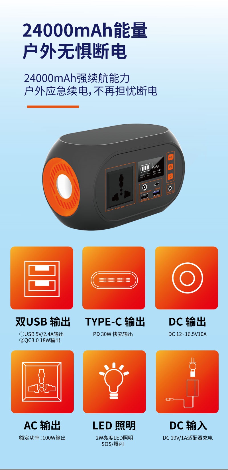 小容量戶外便攜應急移動電源100W手機平板多功能儲能電源工廠批發