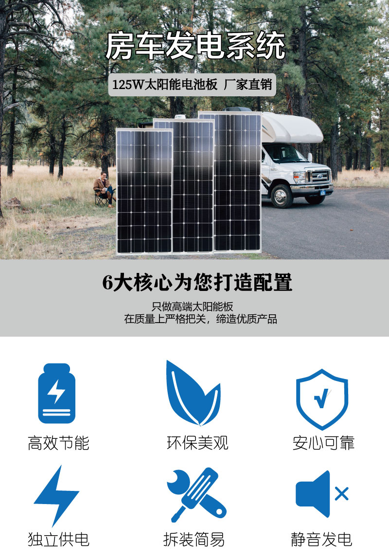 125W太陽能板18V房車光伏電池充電單晶硅戶外電源發電系統